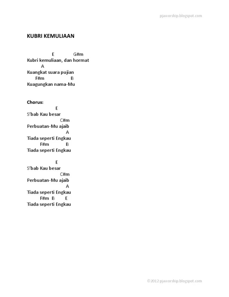 0 orang menyukai akor lagu ini. Ku angkat suara pujian kuagungkan namamu Sbab kau besar perbuatanmu ajaib. Sebab kau besar perbuatan mu ajaib tiada seperti engkau tiada seperti engkau sebab kau besar perbuatan mu ajaib tiada . S'bab kau besar, perbuatanmu ajaib